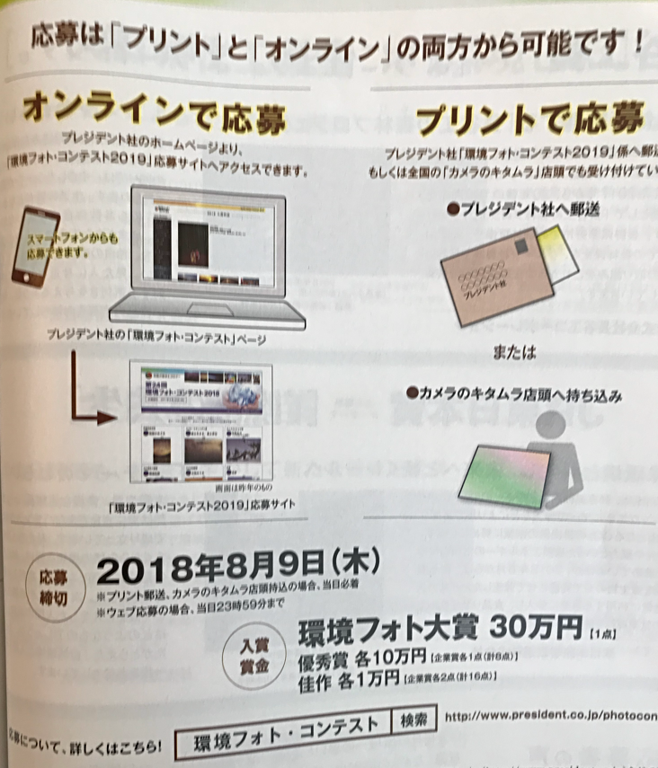このような時代の流れの中で、私が時折買う雑誌「プレジデント」社が主催するのが、今日紹介する「環境フォト・コンテンスト」だ。協賛企業には皆さんもご存知の大手企業が名を連ねる。(興味のある方はググってみてください)