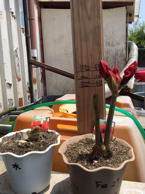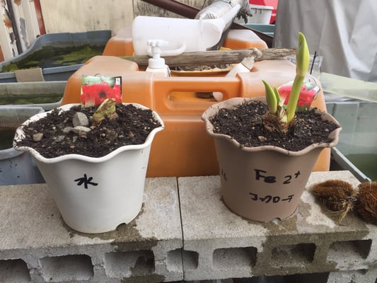 右側の植木鉢がFe2+COCを添加したものです。明らかに生育スピードに差がみられます。